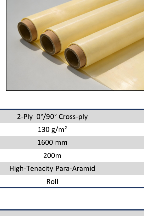 A higher-performing para-aramid hard armor UD for rigid plates and structural ballistic panels where stronger ballistic efficiency is required than entry-level woven solutions.