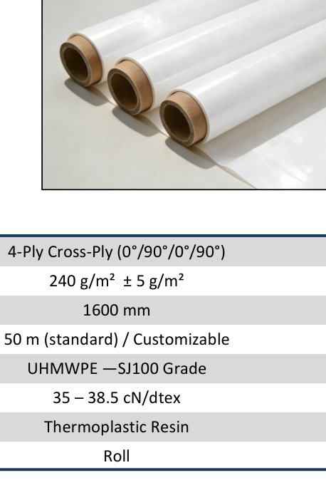 A balanced hard armor UHMWPE UD that blends fragment resistance, plate efficiency, and manageable system weight for ceramic-backed rigid armor builds.